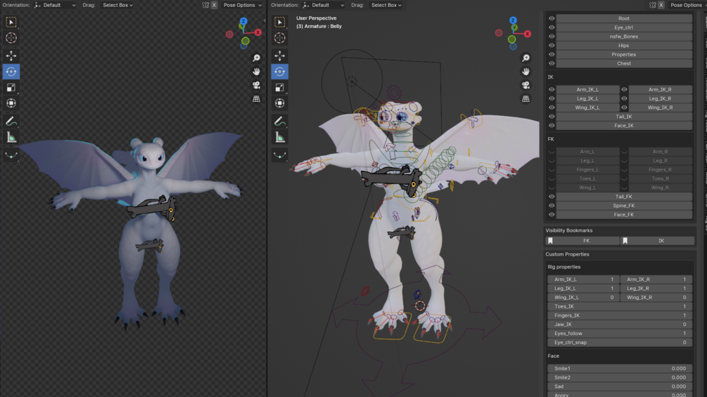 Advanved FK and IK rig, shape keys for facial expressions and body shapes
