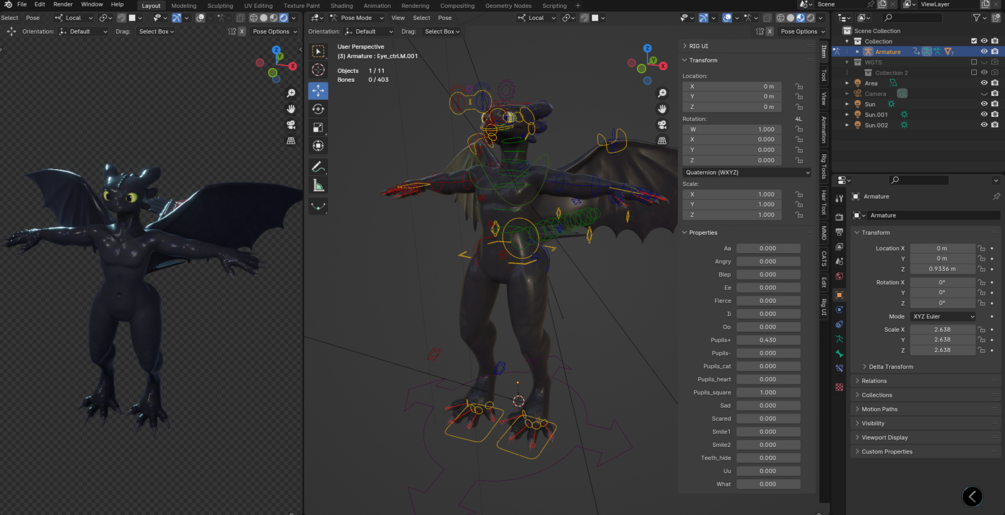 Advanved FK and IK rig, shape keys for facial expressions and body shapes